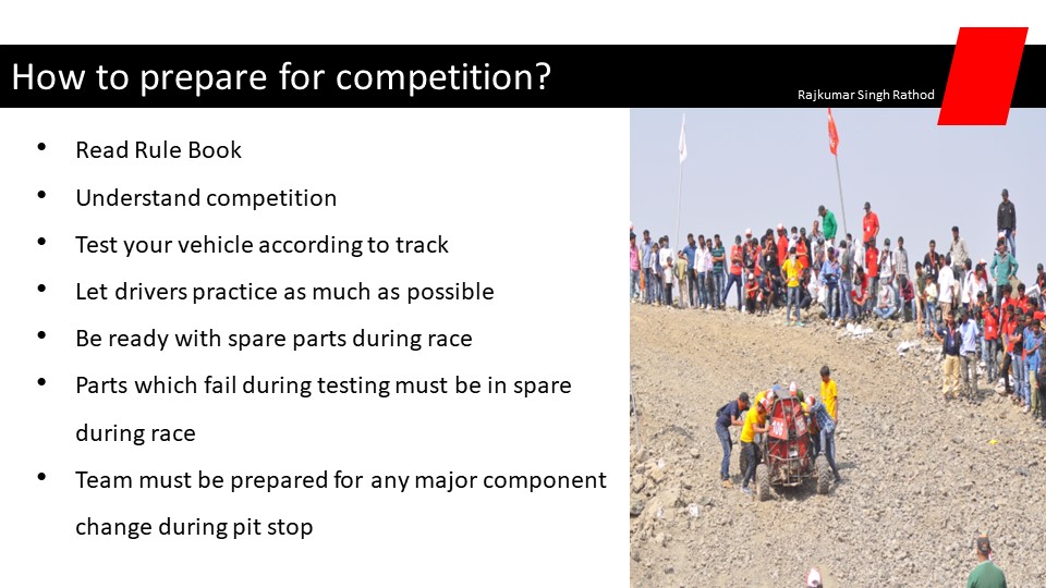 - Vehicle Testing: Conduct rigorous testing of your vehicle according to the terrain and conditions expected during the competition. Fine-tune vehicle settings and optimize performance based on track simulations and real-world testing.